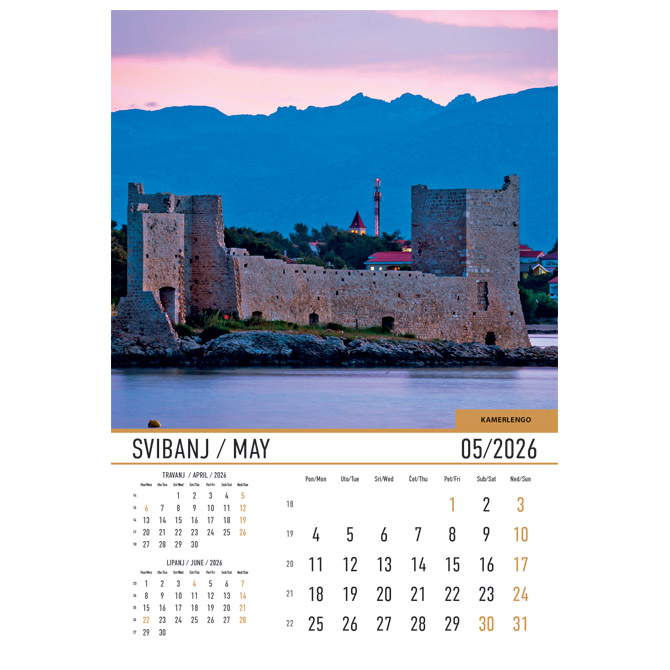 Kalendar “Dvorci i utvrde 2026” 13 listova, spirala