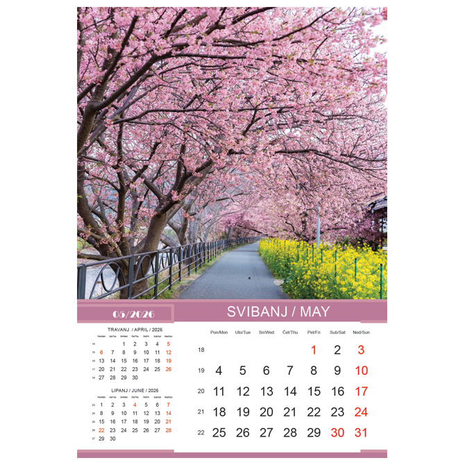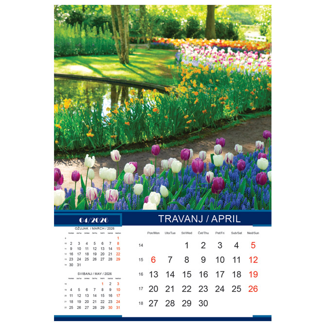 13 listova; dimenzija: 33×48 cm; pasica za dotisak 6 cm; spirala