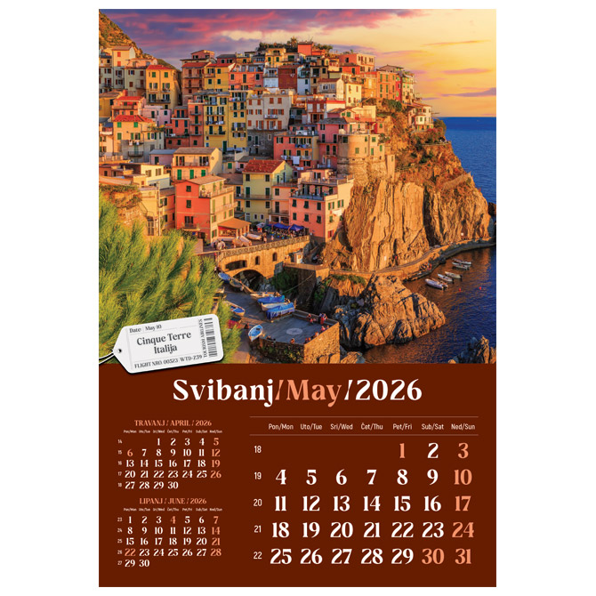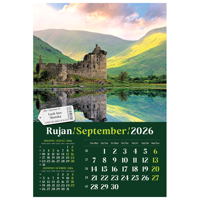 Kalendar “Putujem Europom 2026” 13 listova, spirala