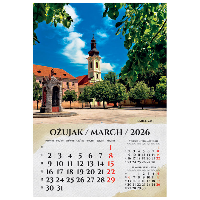 Kalendar “Razglednice Hrvatske 2026” 13 listova spirala