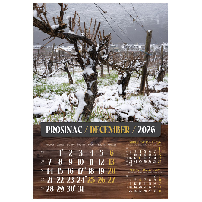 Kalendar “Vino 2026” 13 listova, spirala