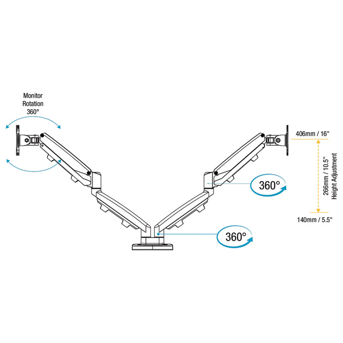 dvije metalne ruke s podesivom visinom,drži monitore svaki do 8 kg